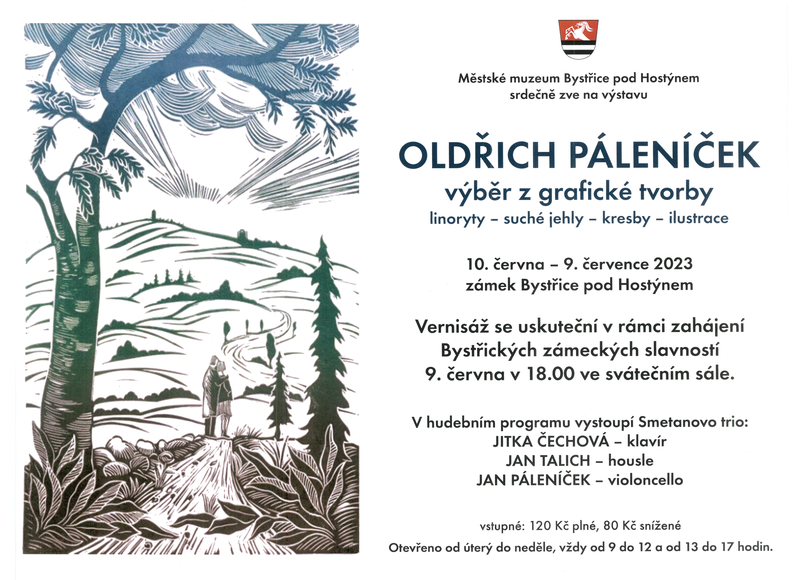 Městské muzeum Bystřice pod Hostýnem srdečně zve na výstavu OLDŘICH PÁLENÍČEK VÝBĚR Z GRAFICKÉ TVORBY - linoryty - suché jehly - kresby - ilustrace.