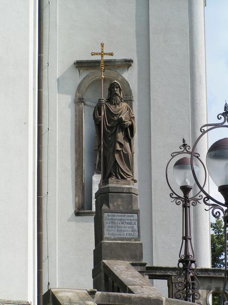 Sochy svatého Cyrila a Metoděje jsou umístěny před bazilikou Nanebevzetí Panny Marie. Zhotovil je kroměřížský sochař Antonín Tomáš Beck. Sochy jsou vysoké 220 cm a jsou z jemnozrného pískovce.
