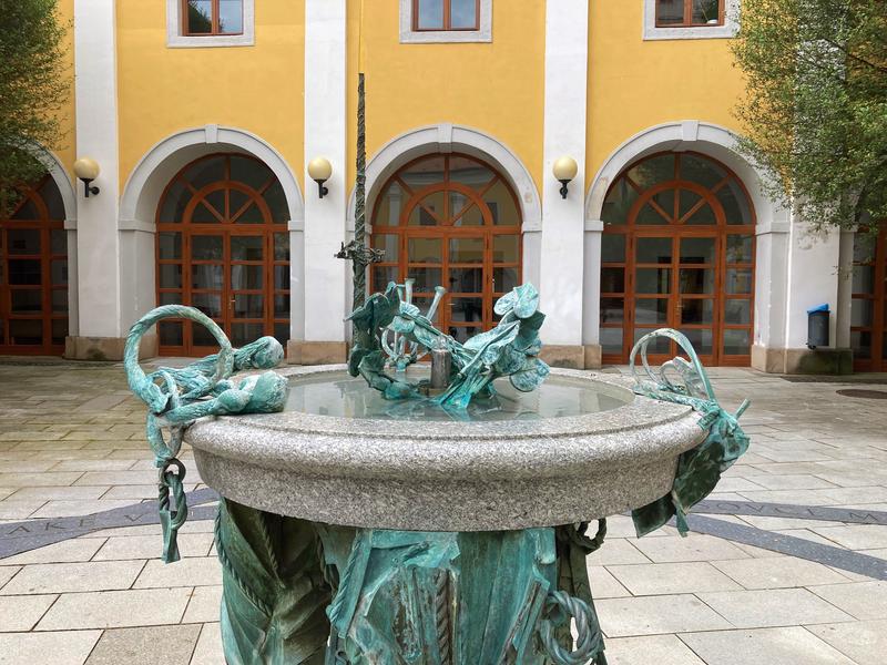 Byla vytvořena v letech 2000–2002. Tři bronzové pilíře fontány představují kořeny, které drží mísu z leštěné žuly. V jejím středu skrápí stylizovanou větev pramen vody, která se stále znovu vrací ke kořenům a symbolizuje podstatu žití. Působivost fontány dotvářejí tři bronzové stély s citací textů básníka a jsou výtvarným dialogem s kulturou baroka. Stély symbolizují víru, naději a lásku. V dlažbě jsou bronzové intarzie s úryvky z Kadlinského žalmů. Kolem stél se vinou stuhy s úryvky z díla spisovatele, básníka, misionáře a překladatele, jezuity Felixe Kadlinského. Každá vertikála má svou osobitou výzdobu. Jako zdobné prvky pro kašnu i sloupy autor použil jablka, listy, lastury, mušle, andělské píšťaly, provazy, zkroucená lana, uzly; zapletené zmije upozorňující na zlo kolem nás i v nás.