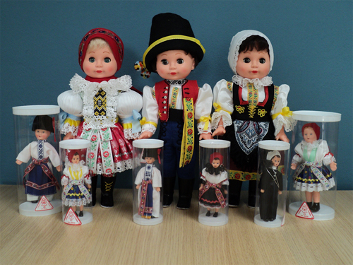 Lidová tvorba v Uherském Brodě vyrábí a prodává krojované panenky různých velikostí a provedení.