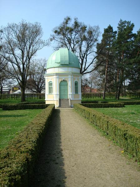 K východní straně zámku přiléhá rozsáhlá zámecká zahrada, která vznikla etapovitým budováním od poloviny 17. století. Ve zjednodušené podobě, zčásti rekonstruována, se dosud rozkládá na velké ploše od zámku a končí oborou u Dobrotic. Vázy na travnatém parteru s reliéfními maskarony, bukranií a vegetativními motivy představují nepatrný zlomek někdejší sochařské výbavy zahrady. Také z početných zahradních architektur, které tam stávaly, se dochoval jediný moderně upravený polygonální altán z poloviny 18. století. Před altánem je umístěn pomník rodáka, hudebního skladatele F. X. Richtera (1709 - 1789) od Jana Habarty z r. 1959.