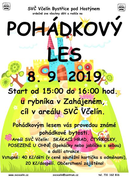 Středisko volného času Včelín srdečně zve všechny děti a rodiče na POHÁDKOVÝ LES, který se uskuteční v neděli 8. září 2019.