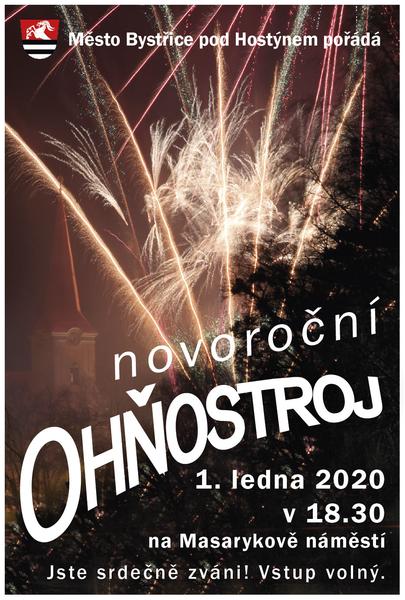Město Bystřice pod Hostýnem pořádá ve středu 1. ledna 2020 v 18.30 hodin na Masarykově náměstí NOVOROČNÍ OHŇOSTROJ. Jste srdečně zváni.