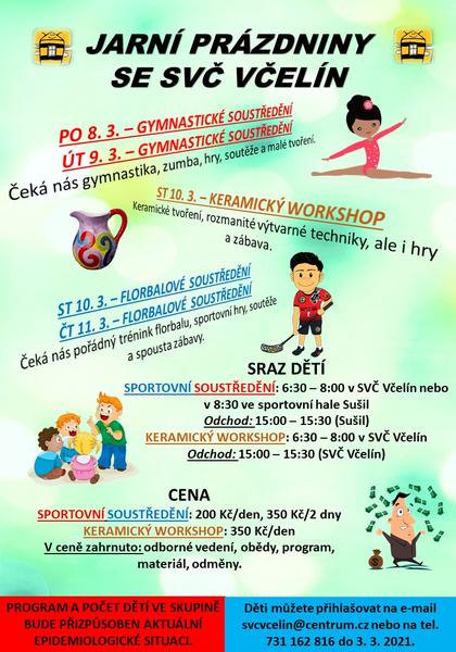 Na jarní prázdniny (8. – 12. 3. 2021) připravujeme pro děti tyto akce: