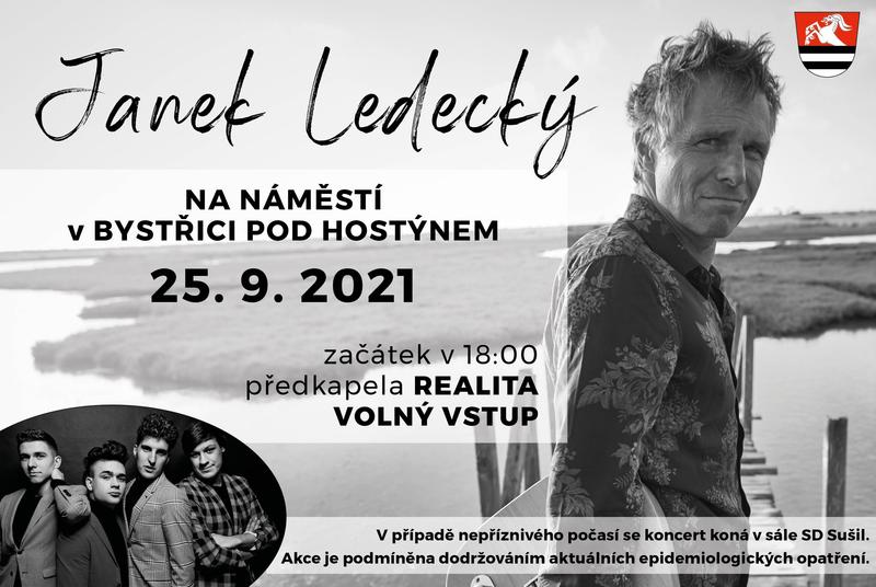 Město Bystřice pod Hostýnem zve na koncert Janka Ledeckého. Koncert se uskuteční v sobotu 25.9.2021 v 18:00 hodin na náměstí v Bystřici pod Hostýnem. Vstupné zdarma.