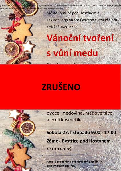 Adventní tvoření pro zpříjemnění předvánoční atmosféry v zámecké konírně v Bystřici pod Hostýnem. Můžete se těšit na pečení a zdobení perníčků, výrobu svíček, tvoření vánočních ozdob atd. A k tomu všemu koupit medové pivo, medovinu, včelí kosmetiku, med a sušené ovoce. Všichni jste srdečně zváni. Vstup volný. Akce je podmíněna dodržováním aktuálních epidemických opatření.