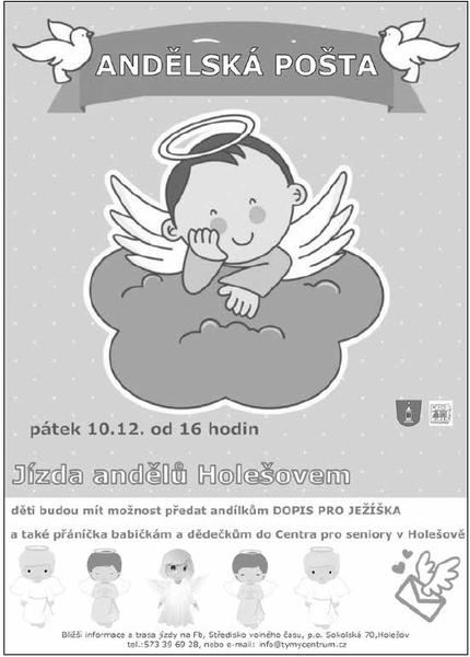 Děti budou mít možnost předat andílkům dopis pro Ježíška, nebo přáníčka pro dědečky a babičky v Centru pro seniory v Holešově