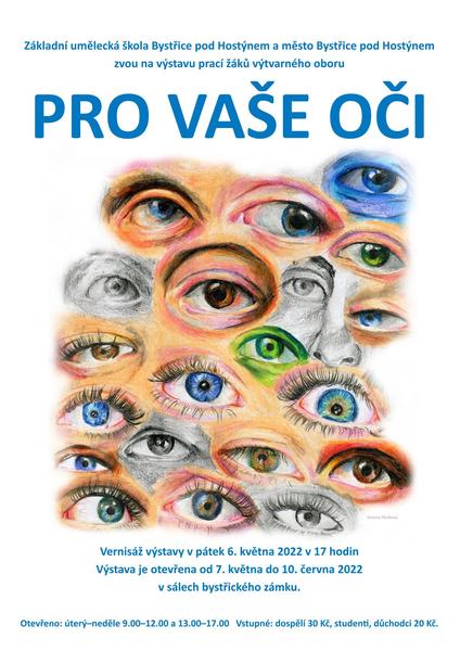 Základní umělecká škola Bystřice pod Hostýnem a město Bystřice pod Hostýnem zvou na výstavu prací žáků výtvarného oboru s názvem Pro vaše oči.