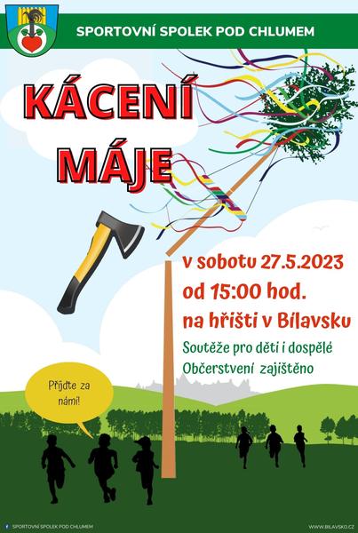 Sportovní spolek Pod Chlumem pořádá KÁCENÍ MÁJE v sobotu 27. května 2023 od 15:00 hod na hřišti v Bílavsku.