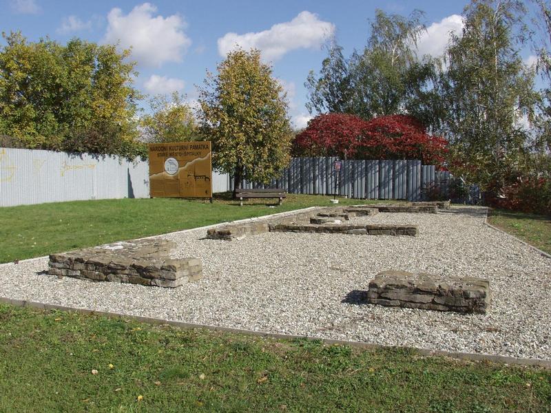 Lokalita se nachází na tzv. Velehradské ostrožně, osídlené již od paleolitu. Při vybírání štěrku z profilu terasy na pravém břehu slepého ramena řeky Moravy byly roku 1949 rozkopány 3 kostrové hroby, brzy nato došlo ke zničení několika dalších kostrových hrobů s milodary, ale i celé jižní poloviny základů velkomoravského chrámu. Ještě téhož roku zde byl zahájen záchranný výzkum Archeologického ústavu ČSAV v Brně pod vedením J. Poulíka. Při něm bylo objeveno dalších 38 kostrových hrobů s bohatou výbavou (ostruhy, železné nože, stříbrné i zlaté náušnice a gombíky, kování rakví a také kruhovitá plaketa s vytepaným reliéfem jezdce se sokolem). Podle uchovaných zbytků základů měl kostel obdélníkovitou loď, která byla na východní straně uzavřena polokruhovitou apsidou a na západě přecházela v nartex. Její vnitřek členilo 6 podpěr. U severovýchodního rohu kostela byly zjištěny zbytky menší stavby s prohlubní, snad baptisteria. Chrám měl délku 18,5 m a šířku přibližně 8 m. Jeho základové zdivo se dochovalo pouze v negativu. Podél jižní a západní strany kostela byly objeveny jamky po kůlech a stopy dřevěného ohrazení. Z hlediska lokalizace stál na strategickém místě, v místech u komunikace a brány tzv. vnějšího opevnění. Vzhledem k absenci nálezů typických pro druhou polovinu 10. století je zřejmé, že zanikl bezprostředně po pádu Velké Moravy. Návštěvníci mohou zhlédnout rekonstruovaný půdorys části velkomoravského kostela z poloviny 9. století, infomační tabule představuje historii a význam lokality.