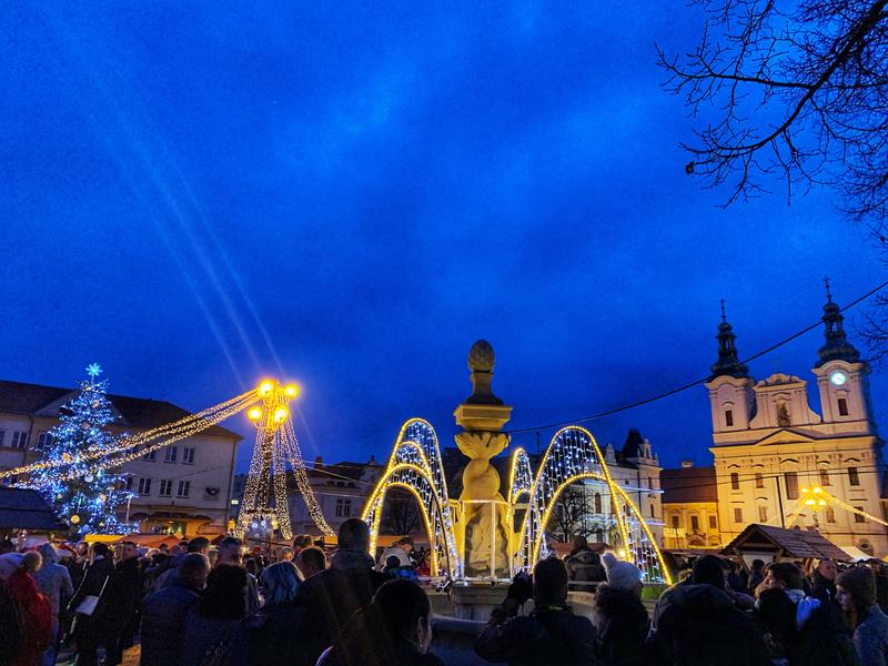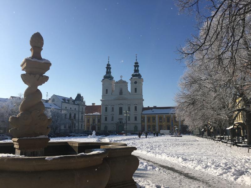 Kašna, kterou zdobí spirálovitě propletená těla delfínů s piniovou šiškou na vrcholu, byla v roce 1985 restaurována a originál přesunutý na nádvoří Galerie Slováckého muzea. Masarykovo náměstí zdobí od té doby její přesná kopie.