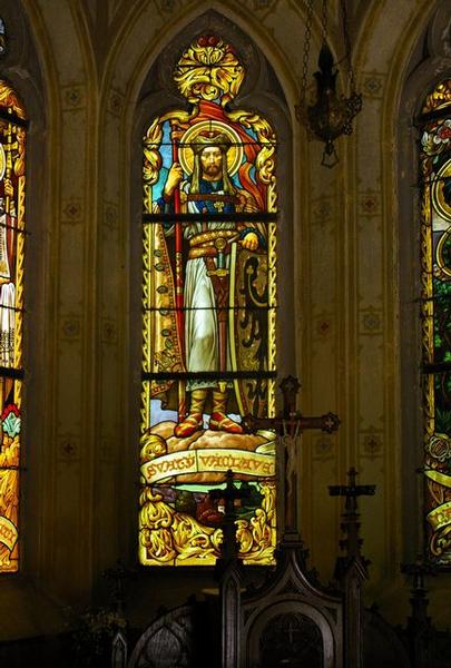 Hlavní oltář je dřevený a vyřezávaný v gotickém slohu. Strop nad oltářem v táto části kaple je rovněž dřevený. Na oltář padá světlo ze tří gotických oken, z nichž prostřední je zdobeno obra-zem sv. Václava, po evangelní straně sv. Cyrila a Metoděje a na epištolní straně sv. Ludmily s hošíkem Václavem.