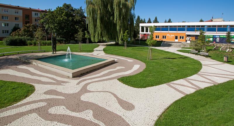 Kašnu tvoří obdélníková vodní nádrž s vodotryskem uprostřed. Na jižním okraji nádrže je situována plastika akademického sochaře Stanislava Mikuláštíka z Uherského Hradiště. Kašna byla postavena při výstavbě sídliště na náměstí Republiky v 60. letech 20. století. V roce 2012 byla provedena celková revitalizace náměstí, fontána byla opravena a prostor kolem ní nově vydlážděn dlažbou s mozaikou.