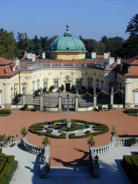 Jeden z nejvýznamnějších barokních zámků na Moravě vznikl na přelomu 17. a 18. století, když se Jan Dětřich z Petřvaldu, majitel nedalekého hradu Buchlova, rozhodl vystavět pohodlné sídlo a reprezentativní doplněk hradu podle vzoru jiho- a západoevropských venkovských vil. Není dosud jasné, kdo je autorem stavby – předpokládá se, že to byl buď Domenico Martinelli z Toskánska, nebo architekt Carlo Fontana, popřípadě Jan Bernard Fischer z Erlachu. Zámecký komplex tvoří dva objekty – hlavní, tzv. dolní zámek a na opačné straně hospodářský trakt, označovaný jako horní zámek nebo také Flóra. Střed hlavního křídla dolního zámku akcentuje dvoupatrový oktogon s kupolovou střechou, který předstupuje třemi stranami do zahrady a obsahuje v přízemí salu terrenu a v patrech hlavní sál. Vnitřní fasádu člení jednou podsunuté jónské pilastry. Střední trakt ukončuje balustrová atika mezi pilířky, rizality mají mansardové střechy. Výrazný detail představuje balkónový portál saly terreny s nakoso postaveným pilířem a sloupem. Objekt Flóry, sloužící původně k ubytování služebnictva a ve střední části za konírny, je situován na terase a jeví se jako parafráze zámecké budovy. Dnešní podobu nabyl buchlovický zámek až v druhé polovině dvacátých let 20. století adaptačními úpravami architekta Dominika Feye. Těžištěm hlavní budovy je oválný hlavní sál, zvaný také hudební. Prostupuje dvě patra a je po obvodu předělen galerií, opatřenou zlaceným kovovým zábradlím. Stěny a kupoli zaplňuje hustá štuková dekorace, rámující pole s freskovou výmalbou. Eliptický obraz ve vrcholu kupole zachycuje génia umění, jenž odevzdává Anežce Eleonoře z Colonna-Felsu dobudovaný zámek, a Štěstěnu rozsévající na něj květiny z rohu hojnosti. Mobiliář a výzdoba dalších prostor hlavního podlaží vznikly zčásti v době výstavby zámku, kdy bylo využito také starších děl z vybavení hradu Buchlova, jednak v pozdějších obdobích. V levém ze dvou koutových barokních kabinetů se v roce 1908 konala diplomatická schůzka rakousko-uherského ministra zahraničních věcí Aloise Lexy z Aehrenthalu a zahraničního ministra carské vlády Alexandra Petroviče Izvolského. V kuřáckém salonu vedle hlavního sálu zaujme štuková výzdoba, ornamentální parketová podlaha a dominantní portrét Ferdinandy Károlyiové, manželky Leopolda II. Berchtolda, z ruky maďarského malíře Gyuly Benczura. Do sousední knihovny byly kolem roku 1730 přemístěny z hradu Buchlova knihovní fondy Petřvaldů, které ale Berchtoldové vrátili s výjimkou jediné barokní skříně na původní místo a nahradili novější beletrií, filozofickou, přírodovědnou a historickou literaturou německé, rakouské, francouzské, anglické a české provenience. Za knihovnou následuje prostorná jídelna, z jejíhož původního zařízení se zachovala kredenc z roku 1642. Po pravé, severní straně hlavního sálu leží stříbrný salón Eleonory z Petřvaldu, pojednaný ve stylu Ludvíka XVI. Státní zámek Buchlovice je národní kulturní památkou.