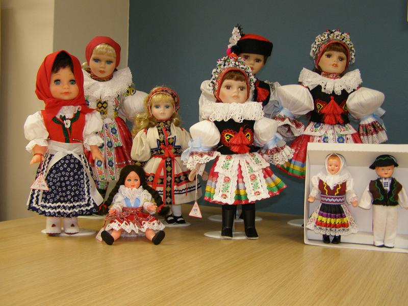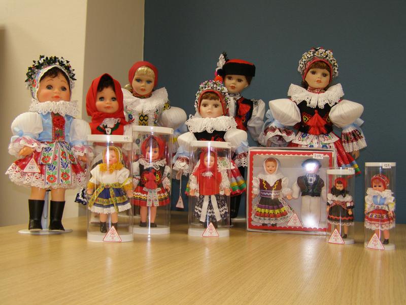 Lidová tvorba v Uherském Brodě vyrábí a prodává krojované panenky různých velikostí a provedení.