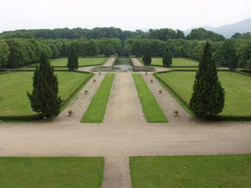 Původně raně barokní návrh zahrady Filiberta Lucheseho byl později změněn a park upraven podle pozdějšího francouzského slohu André Le Nötreova, při čemž byla vybudována síť kanálů v podobě Neptunova trojzubce o délce 980 m a vodní ploše 16 500 m2. Ignác Chambrez připisuje tuto změnu Fr. Ant. Rottalovi. Bohužel, již dávno postrádá dřívější nádhery a malebnosti, jakou zahrada vynikala, kdy ji síť kanálů, vodopády, bazény zdobené kamennými figurami a mnoho sousoší od předních mistrů činily nejkrásnější na Moravě. V parku je dosud zřejmý původní barokní osový rozvrh, který je však již v zadní části překryt prvky přírodního anglického parku. Přední část zahrady se po devastaci z počátku druhé poloviny 20. století částečně upravila podle dochovaných plánů.