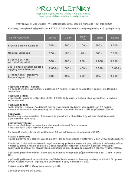 s malými dětmi. Naši rodinnou půjčovnu najdete v Kunovicích u Uherského Hradiště (Zlínský kraj). Půjčení je možné pouze po předchozí rezervaci a domluvení konkrétního termínu vyzvednutí vybavení.