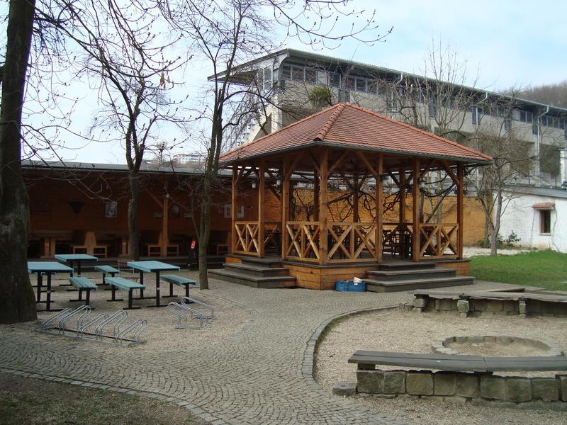 Pivnice má zahrádku s dětským hřištěm a příjemným posezením. Přední zahrádka je celá nadstřešená a vyhřívaná i v horším počasí, zadní má dva altánky, jednu část zastřešenou i s ohřevem, a část má otevírací markýzu. Součástí je také venkovní gril, který nabízí grilované speciality. Pivnice U Máců je propojena s Pizzerií Saloon, která nabízí 35 druhů pizz, saláty a těstoviny. Součástí celého objektu je i Hotel Saloon, Italská restaurace a pivnice Hotel Saloon.