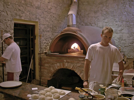Pizzeria Casa Mia nabízí pizzu pečenou v peci vytápěné bukovým dřevem a k tomu širokou škálu vín moravských i světových.