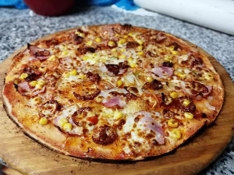 V pizzerii nabízí bohatou nabídku pokrmů z čerstvých surovin: pizzu, těstoviny, zeleninové saláty, palačinky, dezerty a zmrzlinové poháry.