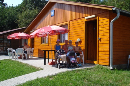 Nabízí ubytování v nově zrekonstruovaných chatkách se sociálním zařízením a kuchyňkou nebo vlastních karavanech či stanech.