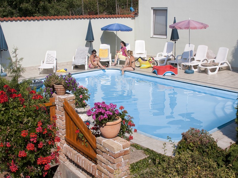Pension Falkom má k dispozici 23 lůžek, nabízí společnou jídelnu a vybavenou kuchyň. Součástí pensionu je i vinárna s nabídkou vína z vlastního malého sklípku. Dále je k dispozici pingpongový stůl, elektronické šipky, pro děti hračky, děrovaný kulečník, malý stolní fotbal, venkovní bazény a brouzdaliště. Altán s grilem, pergola s grilem, pro děti pískoviště, domeček ve stromě, tabule na kreslení, velká trampolína, parkoviště nehlídané (8 míst) , garáž za příplatek (2 místa), úschova Vašich kol v pensionu, rozvoz hostů pensionu po okolí zdarma. Možnost objednávky a dovozu teplého menu.