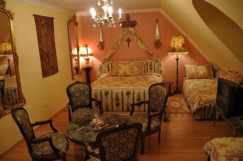 UBYTOVÁNÍ je nabízeno ve čtyřech zámeckých pokojích se starožitným nábytkem: „modrý pokoj“ „oranžový pokoj“ „květinový pokoj“ „svatební pokoj“ a „lovecký apartmán“ v zahradě.