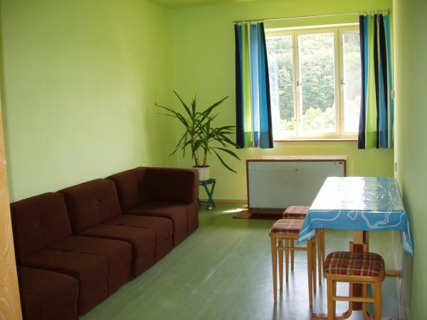 Dále je k dispozici velká společenská místnost, v suterénu se nachází místnost s příjemným posezením u krbu. Úschova kol ve vnitřních prostorách je možná. Možnost parkování přímo u chaty.