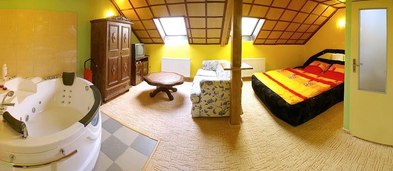 Rozdělení pokojů: 1 dvoulůžkový apartmán s vířivou vanou a sprchou, 7 dvoulůžkových pokojů se sprchou, 2 přistýlky