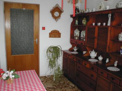Vybavení rodinného domu: Samostatně vybavená kuchyň (mikrovlnná trouba, varná konvice, ohřívač toustů, elektrický sporák s troubou), samostatná jídelna.