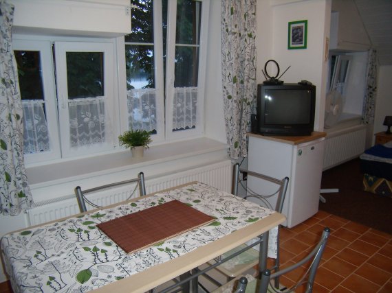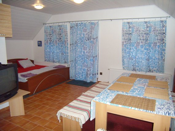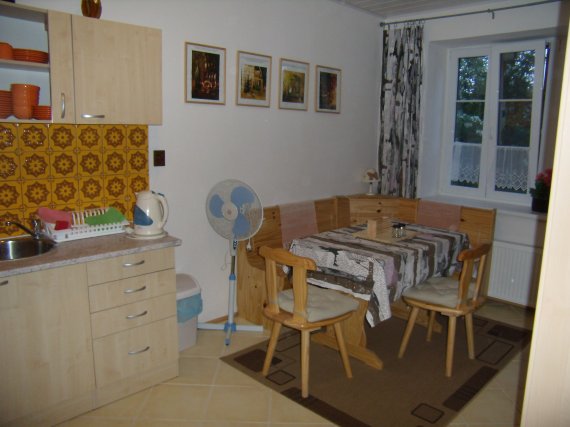 Penzion U Studánky je vhodný k celoročnímu ubytování pro 16 osob ve třech samostatných apartmánech.V každém apartmánu je k dispozici koupelna s WC a sprchovým koutem, ložnice s 5 (6) lůžky a obývací kuchyň. Kuchyň je vybavena dvouplotýnkovým vařičem, mikrovlnnou troubou, lednicí, varnou konvicí a nádobím, v obývací kuchyni je TV a rádio, v koupelně je k dispozici vysoušeč vlasů, ručníky a osušky. Samozřejmostí je sada ložního prádla na osobu. Apartmán v horní zadní čáasti penzionu má samostatnou terasu s posezením a grilem. Spodní část penzionu je vybavena jako stylová vinárna s krbem. Při pronájmu apartmánů slouží vinárna v přízemí pouze ubytovaným hostům. Ve všech apartmánech je k dispozici bezplatné wifi připojení k internetu. Před penzionem jsou dva uzamykatelné domečky pro úschovu kol, parkoviště pro 3 auta a dále k rybníku je pergola s venkovním posezením, grilem, přírodním ohništěm a pískovištěm pro nejmenší hosty. Vedle této zahrady se nachází další, kde je rovněž pergola s posezením a grilem. Na terasově upraveném břehu rybníka jsou lehátka se slunečníky. Pro ubytované hosty je k dispozici lodička .