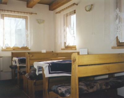 Vybavení: v přízemí - velká společenská místnost s posezením a televizí, kuchyňka s možností vaření, WC, v podkroví - dva pokoje pro 6 a 4 osoby, koupelna s WC