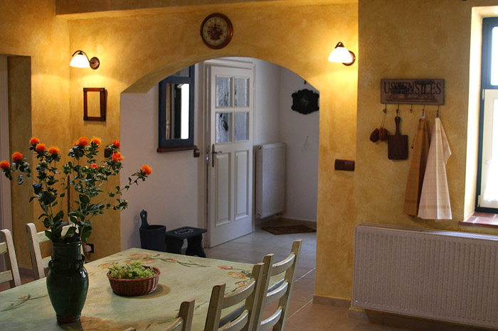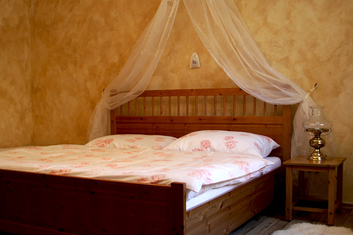 Dům je zařízen ve venkovském stylu. Kuchyň je vybavena myčkou, troubou, lednicí, varnou konvicí a nádobím. V obývacím pokoji se pohodlně vyspí 3 osoby. Je zde rozkládací sedačka a velké rozkládací křeslo. Samozřejmostí je wifi a satelit, dále pak DVD přehrávač a počítač. Romanticky laděná ložnice skýtá lůžka pro další 3 osoby. Vedle manželské postele s baldachýnem stojí pohodlné jednolůžko. Dle přáni můžeme apartmán doplnit o dětskou postýlku, dětskou jídelní stoličku, WC dětské prkénko či přebalovací podložku.