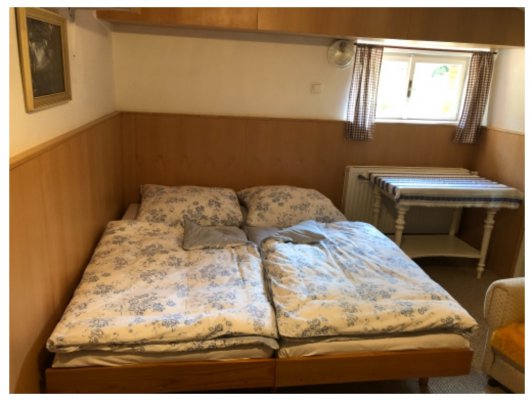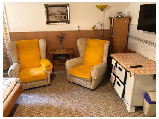 Rodinný dům, jehož součástí je apartmán, stojí na vlastním oploceném pozemku. Dům se dělí na dvě části, v suterénu je apartmán a zbytek domu obývá majitel. Apartmán má vlastní vchod a skládá se ze společenské místnosti, pokoje, kuchyně s koupelnou a samostatné toalety. Okolo celého domu je zahrada, návštěvníkům je k dispozici posezení pod pergolou, kde můžou v letních měsících i grilovat. V případě zájmu je možno pro děti v zahradě postavit stan (k dispozici u majitele). V zahradě se nachází ovocné stromy, v období měsíců květen a červen mají návštěvníci možnost samosběru třešní. Součástí zahrady je i malé jezírko a majitel rovněž chová drobná domácí zvířata (kočky, králíky a slepice).