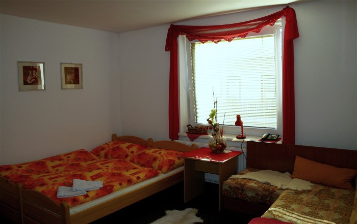 V penzionu máme dvoulůžkové a třílůžkové pokoje. Některé pokoje mají vlastní kuchyňku a možnost přistýlek. Apartmány - garzoniéry mají velký zastřešený balkon - terasu, vanu, bidet, vlastní kuchyňku a samostatný vchod.