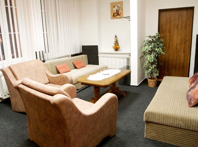 Apartmá tvoří obývací pokoj, ložnice, kuchyňka a sociální zařízení. Obývací pokoj je vybaven sat. televizí, rádiem. Sedací soupravu v obýváku je možno rozložit na dvě lůžka a je zde i samostatný gauč. V ložnici je manželská dvoupostel a navíc gauč jako přistýlka. Kuchyňka je vybavena základním nádobím s lednicí,mikrovlnkou a sporákem. V penzionu je možno ubytovat až 6 osob.