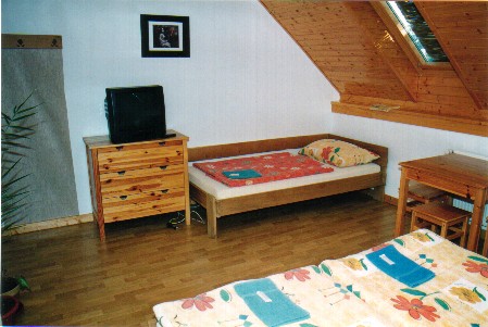 Dva dvoulůžkové pokoje, dva třílůžkové pokoje, vlastní sociální zařízení, kabelová televize, společná kuchyňka, uzavřené parkoviště.