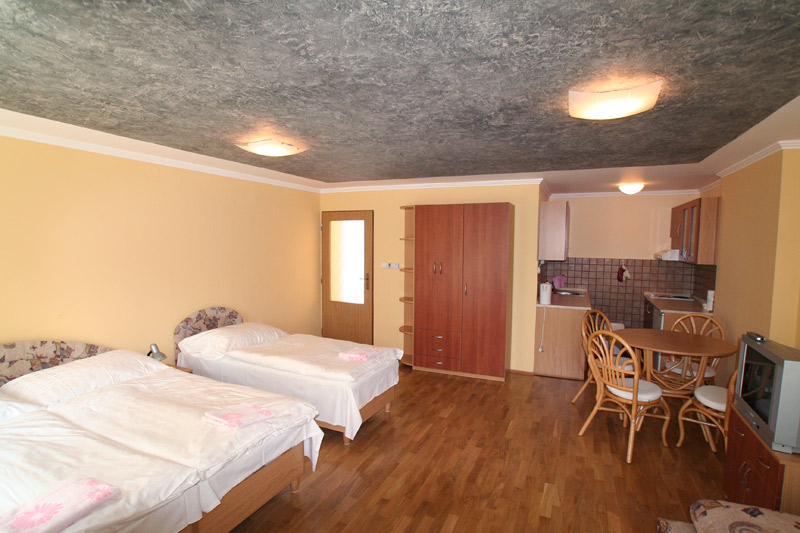 K ubytování nabízíme 2 apartmány. Vybavení apartmánu: 3 samostatná lůžka, rozkládací sedací souprava pro 2 osoby, barevná TV, kuchyňský kout s ledničkou, elektrickým sporákem, varnou konvicí a nádobím, sociálni zařízení (sprchový kout, WC). Umožňujeme úschovu kol a parkování před penzionem. Přímo za penzionem je venkovní krb s možností posezení