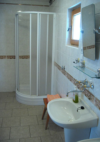 Schody nás zavedou do podkroví, kde jsou dvě ložnice, každá pro 3 osoby. Večer