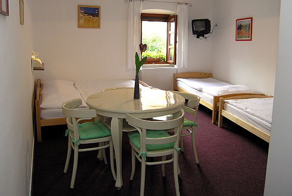 Penzion má pokoje vybaveny vlastní sprchou, WC, televizí, satelitem, internetovým připojením. Přímo z pokoje můžete kontrolovat své zaparkované vozidlo na jednom z kanálů na televizi v pokoji. Dále vám nabízíme uschování kol a také možnost parkování přímo před objektem.